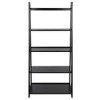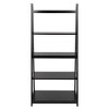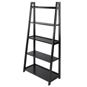 Enhance your room decor with an urban, industrial appeal with the Adam A-Frame Shelf from Winsome. with five tiers supported on a ladder-like silhouette, this decorative frame shelf brings a fresh look to your interiors, while the black finish lends a sophisticated touch to any setting. Perfect for displaying your prized book collection, this five-tier shelf provides ample space for filling it with framed photographs, decorative pieces or figurines. There are 5 total shelves of differing sizes. Overall shelf size is 27.8"W x 12.9"D x 58"H. Combine this with the Adam Desk and Corner Shelf to create a complete look. All five shelves are 26.3"W. 1st Top Shelf depth is 4.1"D, 2nd Top 6."D, Middle 7.9"D, 4th Shelf 9.75"D and 5th Bottom Shelf 11.6". There is a 12" Clearance between each shelf. Made with combination of solid and composite wood in black finish. Assembly required.
