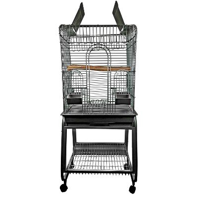58" Wrought Iron Bird Cage with Rolling Stand - Easy-Clean Tray, Spacious Flight Area for Cockatiels, Parakeets & Finches with Stainless Bowls