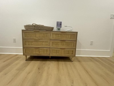 59.06" 6-Drawer Rattan Dresser, Storage Cabinet with White Drawer Slides for Living Room and Bedroom, Black 4W - ModernLuxe