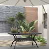 This rectangular table anchors the look of your patio or deck, plus it offers a place to enjoy Saturday afternoon BBQs. Measuring 58.27"L, it is designed to accommodate six people for a seated meal, while also making a great buffet table when you’re entertaining a crowd. It is made from water-, UV ray-, mildew-, and rust-resistant powder-coated steel in a matte black hue. We love the way the legs angle into the middle, creating extra legroom for your guests.