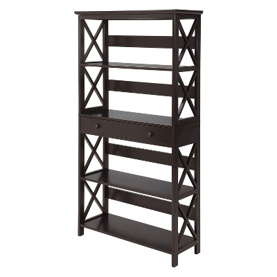 Give your home a handsome makeover with the Oxford 5 Tier Bookcase with Drawer. Featuring 5 spacious shelves as well as one drawer for concealed storage you can display books and collectibles while hiding away unsightly accessories. Clean lines paired with the X pattern creates a modern appeal. Crafted with functionality and contemporary styling in mind the Oxford 5 Tier Bookcase with Drawer will become a staple in your home. Also available in multiple finishes this piece will easily complement any home decor. Look for other items from the Oxford Collection for the complete look sold separately.