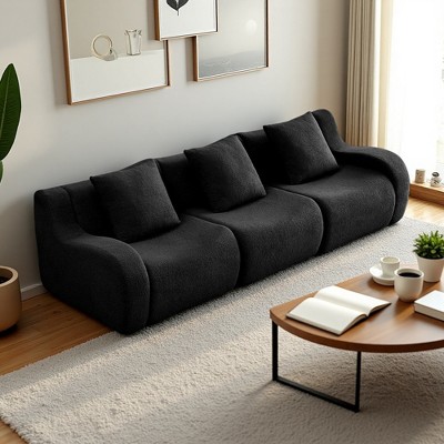 59.8" Modern Black Round Chaise Lounge Sofa with Plush Cushions, Upholstered Boneless Design for Cozy Living Room Relaxation -3irtyhousy