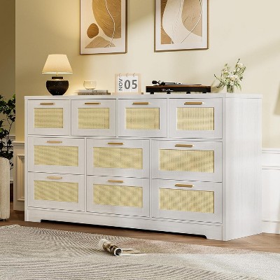 59 Inch Wide 10 Drawer Dresser with Wood Frame, Modern Chest of Drawers with Fluted Texture, Large Bedroom Storage Organizer with Anti-Tip Kit, for Living Room, TV Stand
