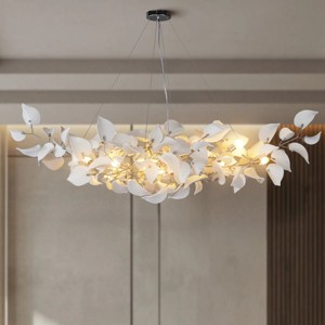 - The branch of the living room chandelier is made of metals,chandelier anti-corrosion, anti-rust, longer service life. Leaf is made of ceramic, high hardness, high temperature resistance, good light transmission.