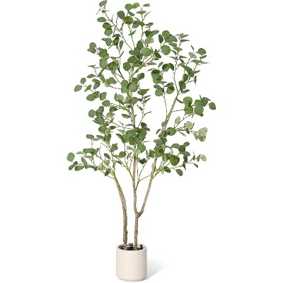 5FT Artificial Eucalyptus Tree, Realistic Faux Plant with Bendable Stems, Weighted Black Pot, Easy Assembly Indoor Decor
