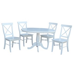 International Concepts 36" Round Extendable Dining Table with 4 X Back Chairs Set