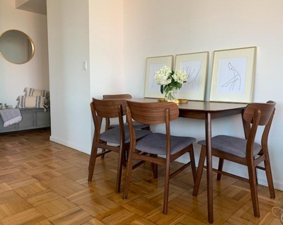 The dining set fit perfectly in my living space but it’s been less than a week and the chairs are squeaking so don’t buy this product if you have kids that swing on chairs lol