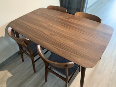 Pretty good price for a dining set. That said, not the best quality so you get what you pay for. Table came damaged in the edge but it wasn’t enough for me to go through the hassle of returning it. I will agree with a lot of reviews and confirm that the table is easy to put together but not the best quality and easily damaged. Chairs were not difficult to put together but some of the parts were a poor fit. It’s comfortable but does feel like it might fall apart with time. To summarize this purchase, the design is very trendy, great price for what you get but not for you if you’re looking for quality and sturdiness.