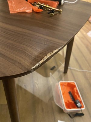 While I agree the chairs are a bit of a struggle (by myself it took me all in probably 2 hours to set up the table + chairs), it wasn't the worst. It's just a lot of pieces. I do agree that this does scratch easy. My girlfriend put something sharp/metal on it and it did scratch the wood a bit. I'm usuing place settings + a runner so I'm less concerned when people are over. For the price, you really can't beat it (especially if you like mid century modern).