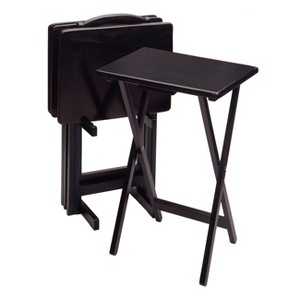 5pc Alex Snack Table Set - Black - Winsome: Beechwood, Storage Stand, Easy Clean, Foldable