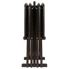 The Anila 5-piece Snack Table Set brings a distinct and enchanting new look to TV trays. The trays have beveled edges that show off the gently curved fan shape, and with the longer arc you get even more tabletop space. Perfect for entertaining, serve up hors d'oeuvres in style and offer your guests a lovely designed tabletop on which to place their drinks and plates. For dining at home in the living room or on the patio, the Anila Set will make your meal a bit more special. The tables come fully assembled and fold and store easily on the accompanying rack. Made of Solid and Composite wood in a deep Coffee finish.