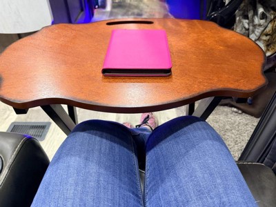 This tray table has a little bit bigger surface area that other tray tables and works very well for a desk since we are now working and schooling from home. The contrast from the hazelnut and white finishes are very complementing to any home decor.