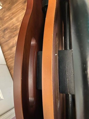 This tray table has a little bit bigger surface area that other tray tables and works very well for a desk since we are now working and schooling from home. The contrast from the hazelnut and white finishes are very complementing to any home decor.