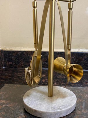 It’s a beautiful bar accessories set. The marble base is solid and the tools are brass. It’s very well made, but don’t purchase online, they don’t package delicate items appropriately. One of the tools the hanging part broke during shipping, but Target has great customer service so I was able to get a replacement.