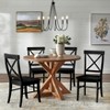 Classic and contemporary design merge to create a stylish modern farmhouse vibe with the 5pc Crenshaw Round Dining Set from Buylateral. The 45.25 inch diameter veneered MDF tabletop highlights a sleek pedestal base constructed of solid rubberwood in a rustic driftwood finish. Four dining chairs feature a cross back design in a striking black finish, constructed of solid rubberwood creating a distinctive contrasting set.