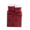 Enjoy a regal feel in your bedroom with the Damask Medallion comforter set. Featuring an ornate damask pattern in rich red and black creating a striking gorgeous contrast. The matching shams echo the bold and stylish design from the comforter. The solid gray oblong pillow is velvety soft and embellished with a sophisticated geometric quilting pattern. The square pillow is curated to compliment the comforter ensemble. Made of easy care brush polyester for long lasting comfort. This comforter set will transform your bedroom into a stunning and lavish retreat!