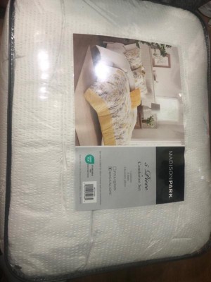 [This review was collected as part of a promotion.] Now that spring is here, I was happy to tuck away my heavier comforter and bedding and dress my bed with this beautiful set from Madison Park. The comforter has a quilt like look but with a lightweight feel and the most lovely floral design in yellow, gray, and white. The set comes with 2 shams and 2 decorative pillows. One small pillow is a contrasting gold color, and the larger pillow has the same design as the comforter but with an embroidery design. It's the perfect queen size fit with plenty of room on the sides and foot of the bed. Absolutely gorgeous!