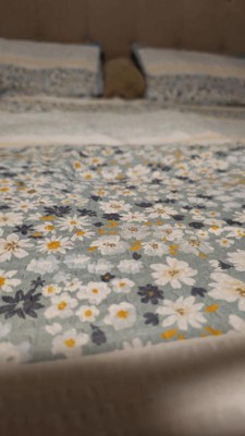 [This review was collected as part of a promotion.] The Madison Park Caralie 5 Piece Seersucker Comforter Set with Throw Pillows is so very sweet. This is the perfect comforter for the warmer months as it is light weight. Also the seersucker fabric is perfect for the spring or summer. I love the pattern of daisies, it's so sweet. This set comes with two pillows which completes the look.