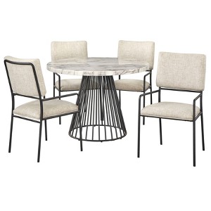 Lifestorey 5pc Indra Dining Set Cream: Faux Marble Top, Black Metal Base