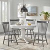Set a timeless tone in your dining space with the 5pc Kale Pedestal Dining Set from Buylateral. From classic interiors to modern farmhouse, this adoring set adds an easy elegance to your home. The sturdy 47.25 inch round table is crafted of solid rubberwood with a durable MDF top in a crisp white finish, while the four curved spindle back chairs in charcoal gray are constructed of solid rubberwood. Updated for today’s interiors featuring a two-tone concept, this set creates a fashionable look while adding color and style to your space.