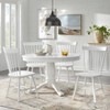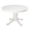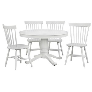 This 5 piece Kale Pedestal dining table adds a classic touch to your kitchen or dining area. This table features a beautiful pedestal base with a round top. Great for small space living. Made from solid Rubberwood with an MDF top, this set coordinates with almost any interior. Dimensions: 47.25 x 47.25 x 30 inches.