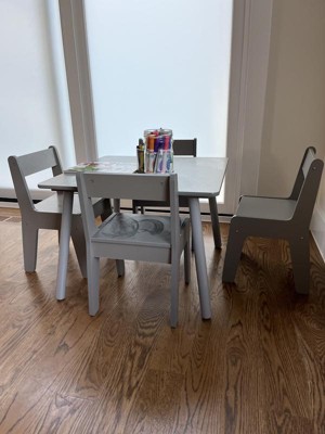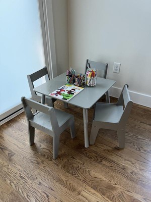 - Sturdy engineered wood 5-piece set, 1 kid's table and 4 chairs.