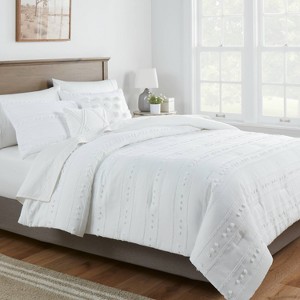 - Dobby comforter set adorned with clipped dots and stripes