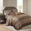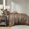 To add a touch of richness to your current décor, the Mirage 5pc Polyester Jacquard Reversible Bedspread Bedding Set offers a luxurious update to your room. Made from polyester jacquard, the bedspread and shams share leaf, striping and ironwork motifs. This collection will adding a lavish feeling to your decor. Two decorative pillows feature pleating and embroidery details that correspond back to the bedspread, bringing the entire look together. Machine washable for easy care, spot clean on decorative pillows, this jacquard bedspread set brings an extravagant and traditional touch to your bedroom.