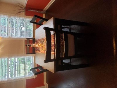 First off the color says (Gray) the chairs are black with gray cushions! The color does not go with my dining room. If it wasn’t such a hassle to return it I would! One of the chairs also came chipped. I guess the only plus was that the cushions are comfy.