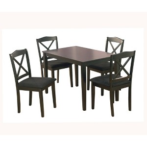 Enhance your kitchen or dining room area with the 5-Piece Mason Dining Set from Buylateral. The rectangular table and cross-back chairs are sure to create a focal point in any dining space. A sleek Black finish with upholstered chair seats in a durable Black microfiber provides added comfort when gathering with family and friends.