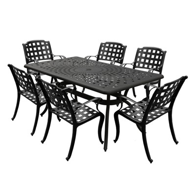5pc Patio Dining Set - 48" Modern Outdoor Mesh Aluminum Round Table & Checker Chairs, UV & Weather-Resistant - Black - Oakland Living