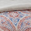 Transform your bedroom with the 5pc Queen Medallion Bedding Set Red/Blue. This beautifully designed set includes a cozy comforter, two matching pillow shams and two decorative pillows to complete the look. Crafted from woven dobby fabric with a 160-thread count, it offers a lightweight feel while adding an elegant touch to your space. Perfect for refreshing your bedding with a bold and stylish medallion design, this set is great for a good night's rest.