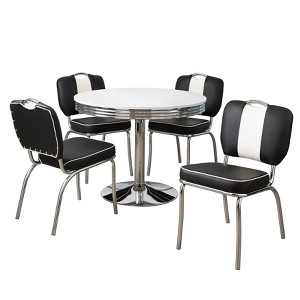 Buylateral 5pc Raleigh Retro Dining Set Chrome Pedestal Base Faux Leather Chairs