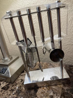 - 5pc stainless steel bar tool set with stand