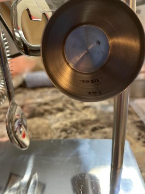 The set does look really nice, but needs actual packaging. The set comes in a not so steady plastic holder that doesn’t keep the pieces from falling all in my bag from the store. 1st pic shows the nick in the stand. The 2nd pic shows what seems to be the start of a rust spot in the measuring cup. The 3rd pic shows how the set was handed to me in the store…no actual packaging or box, so I’ll have to buy a nice box before gifting it. Despite all that, I know it will look nice on my friend’s bar at home…I’d purchase again.