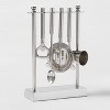 Create a complete home bar with the Stainless Steel Bar Tool Set with Stand from Threshold™. This attractive five-piece stainless steel set includes everything you'll need to make the perfect drink — a bar spoon, jigger, strainer and bottle opener — and it comes with a convenient display stand that keeps the pieces organized. Featuring a gleaming metal finish, this cocktail tool set is not only a practical addition to your collection of barside essentials, but also adds a touch of extra style to your bar cart or countertop.