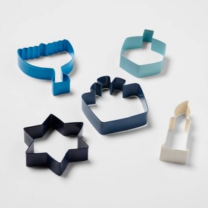 Add a touch of creativity to your baking with the 5pc Stainless Steel Cookie Cutter Set - Spritz™. Perfect for Hanukkah celebrations, this multicolored set includes five distinct shapes, making it easy to craft delightful cookies. Made from durable stainless steel, these cutters ensure precise cuts and long-lasting use. Whether you're a seasoned baker or just starting out, this set is a fun way to enhance your cookie-making experience.