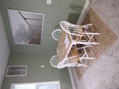 - The white and natural colored dining chairs match perfectly