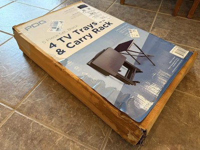 This set of four TV trays and a carrier is as advertised - attractive, sturdy, and durable. Easily cleaned for lasting beauty. Matches my new, smaller dining room furniture while doubling seating if necessary. A simple way to solve a space problem.