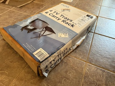 We just received the set of table trays we bought as a Christmas gift. 2 minutes after they were placed at our door we brought the package into our home. The package was soaked completely with rain. It’s been raining today. Obviously our package had been completely soaked before it was delivered. We had to remove the trays from the destroyed package so they wouldn’t be ruined. Now I can’t wrap my gift for my daughter. I’m beyond disappointed and angry with this delivery!!! On a good note, luckily the trays were not destroyed!!!