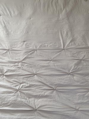 [This review was collected as part of a promotion.] I’m very happy with this bedding set! The buckwheat and cream coloring is versatile and easy to dress up with other decorative pillows and/or throws! It fit a queen size bed as expected with no issues, and while the sham cases were a little difficult to get on, the snug fit creates full looking shams without any “floppiness.” It’s soft and comfortable to use, and I felt like the comforter was a nice weight (not too heavy, not too thin). I did think it was interesting that the pin tucks only go halfway up the comforter (shown in my second photo). This isn’t an issue if you fold the comforter back far enough, but it did surprise me and I would have preferred the pin tucks all the way up. The white sheets that come with the bedding set are on the thin side and quite sheer. We have a cream colored mattress cover and because of how sheer the sheets are, it makes the fitted sheet look more cream than white (shown in third picture with top sheet for comparison). Because of the cream and white coloring of the whole set, again, this doesn’t cause an issue for us, but it may be good to be aware of!