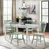 This 5pc Vinturi dining set has chic style that will make a statement in your dining area. The rectangular table in white has rounded edges with slightly turned legs and the mint chairs have a rounded seat with a slanted back for comfort. The tabletop is constructed of MDF with veneer and solid rubberwood legs, while the chairs are solid rubberwood providing a set that is durable and available in multiple colors for your choosing. Requires some assembly.