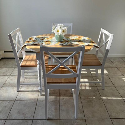 - Large drop-leaf table top and 4 cross-back chairs