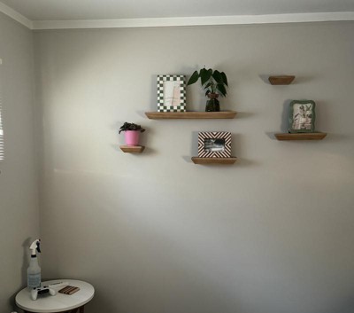 These shelves are praised for their stylish design and versatility, making them suitable for various displays in the home. Many guests appreciate their lightweight nature and ease of installation, especially with the included templates and hardware. However, some concerns arise regarding the quality of the materials and the accuracy of the installation templates, which can lead to difficulties during setup. Overall, they offer a modern touch to any room.