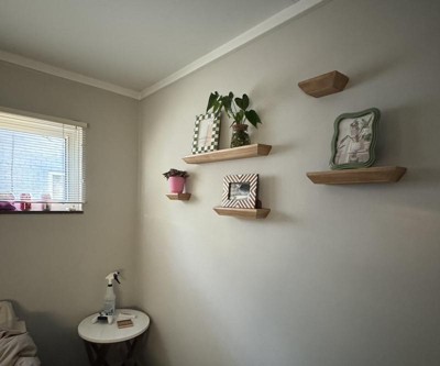I know what you’re probably thinking… these look cute and would look great on my wall. I thought so too. They will… if only you could install them. It took me an hour to get ONE shelf hung on my wall. They are cheap, low quality, and have barely enough room to get the screw to fit in the mount. In addition to that, you have to blindly move the shelf around to find the PERFECT spot, and hope that the screws are the right distance from the wall. The most frustrating thing I’ve built, and I don’t wish this pain on my worst enemies. Save yourself… don’t buy this product.