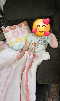 [This review was collected as part of a promotion.] I am really impressed with this bed set. Not only are the 2 pillows adorable the the blanket! Ahh it's darling. My 8 and 10 yr old daughters were both fighting over who would get this bed set. Ultimately the younger one won but this bed set would be great for all ages of youth, pre teen and even teen! The fuzzy ruffles are so cute on the one side or you can flip it over to an all Easter pale yellow color on the back. It's fluffy and comfortable and goes with many different room ideas. Easy to wash and line dry and judt as fluffy as before. It's going to be the perfect fall blanket!