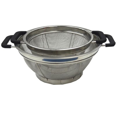 - 5qt stainless steel colander for straining foods or rinsing fruits and vegetables