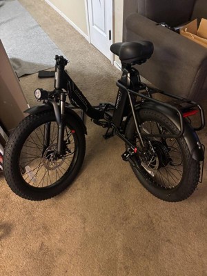 [This review was collected as part of a promotion.] From the words of my nephew, this bike is the best bike ever! I gifted it to my 16 year old nephew who’s wanted an electric bike for so long. We received the black colored one which was a great surprise. Putting it together only took 30 minutes, as it comes 95% assembled, and came with the tools. This bike is foldable & portable making it easy to load up if needed. My nephew was able to completely adjust both the handlebars & seat to his needed size. You can even choose to have a seat with shocks! He had no problems seeing at nighttime as it has an extremely bright headlight, and taillight. The 20” x 3.0” tires are multi-terrain. You can easily ride this on grass, snow, etc.. The battery is a detachable 48V 10.4AH. It’s a large capacity, BMS protection, waterproof, and has a key to detach it. This made us feel safer because it prevents theft. It takes roughly 5 hours to fully charge. You can choose from 2 different modes. There’s pure electric mode that lasts 25 miles on the battery, or Petal-Assist mode that lasts 45 miles on the battery. My nephew is so impressed at how far he can go without using much battery. The transmission is a 7-speed Shimano. You can choose from 7 gears depending on the terrain and comfort! The throttle and brakes are easy to use and great quality. This bike also has a rear rack with a 110lb capacity. You can get the optional rear basket to hold items, or you can get the optional long seat cushion if you prefer the dirt bike feel. My nephew wants the basket for Christmas so he can hold extra stuff! The best part of the bike according to him is how fast it goes. It can reach 25mph with its 500W/Peak 900W motor. He really can fly on this bike! It has a light-up screen on the handlebar that shows ODO, Trip Dist, Battery Volt, Time, Speed, Battery Used, Gear, Brakes, Motor Fault, and work’s the headlight. It’s very clear, easy to use, and he loves keeping track of his trips. This is truly a great bike and for the price it is extremely affordable for all it does. With a max weight of 330lbs it’s great for older kids & adults. All his friends now want one!