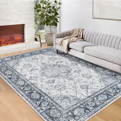 5x7 Area Rug, Washable Rug, Modern Geometric Accent Rug, Soft Rugs for Living Room, Ultra-Thin Low Pile Entryway Rug, Non Slip Carpet, Grey