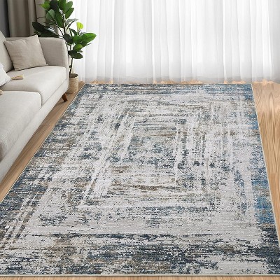 5x7 Bohemian Medallion Area Rug, Grey/Blue Machine Washable Non-Slip Carpet for Bedroom, Dining, Nursery & Office